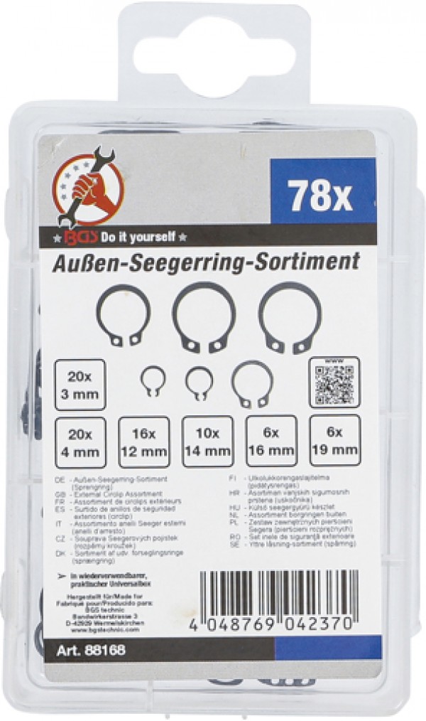 BGS 88168 Außen-Seegerring-Sortiment (Sprengringe) | Ø 8 - 19 mm | 78-tlg.