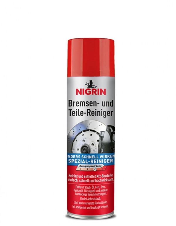 Nigrin 74057 Bremsen-Teilereiniger 500ml Sprühdose, zur Entfettung und Reinigung von Bremsen-, Motor- und Maschinenteilen